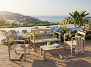 From this inspiration comes Amalfi, the new outdoor lounge set made of aluminum and ash wood, designed for those who want to experience the outdoors with the same elegance and quality as a refined indoor space.