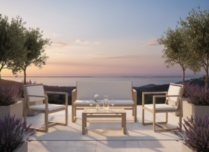 The Amalfi Lounge Set is the perfect synthesis of technical resistance and natural charm, crafted with Made in Italy excellence.