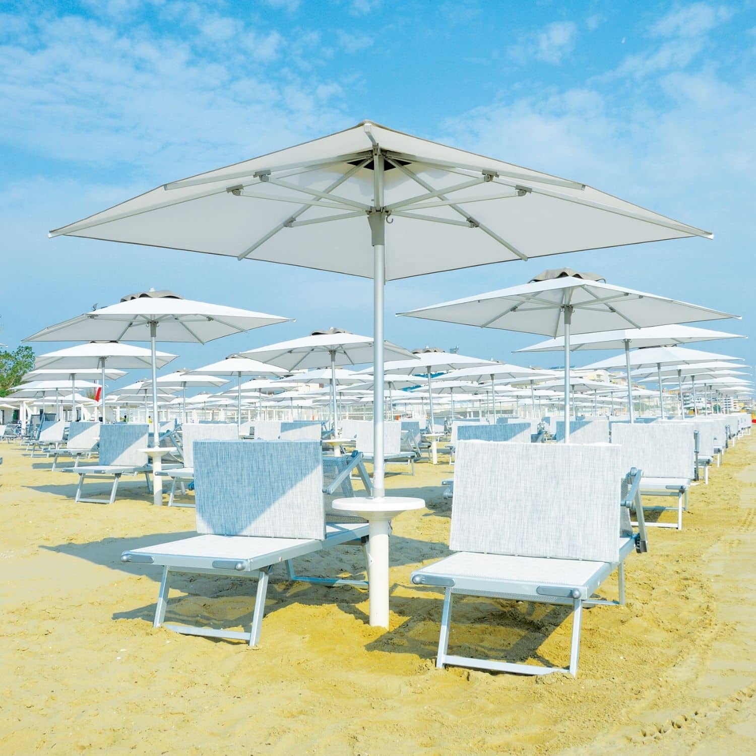 Made of anodized aluminum and steel with acrylic fabric covers, designed to ensure greater durability over time, Ramberti parasols become the true highlights of your beach.