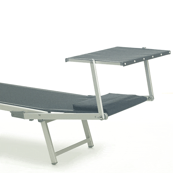 La structure en aluminium avec quincaillerie en acier inoxydable AISI 316 garantit une longue durée de vie et une résistance aux intempéries, le rendant adapté aux environnements extérieurs tels que les plages, les piscines et les jardins. Il est disponible avec ou sans pare-soleil (tettuccio).
