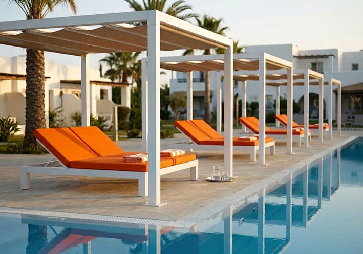 Questo gazebo è una soluzione professionale Made in Italy, pensata per durare nel tempo e valorizzare gli spazi esterni che hanno la necessità di creare zone d’ombra eleganti e funzionali come spazi outdoor di ristoranti, bar, hotel e locali pubblici. Grazie alla qualità dei materiali e alla facilità di utilizzo, rappresenta un investimento ideale per chi opera nel settore Ho.Re.Ca. e cerca arredi outdoor affidabili, resistenti e dal design pulito.