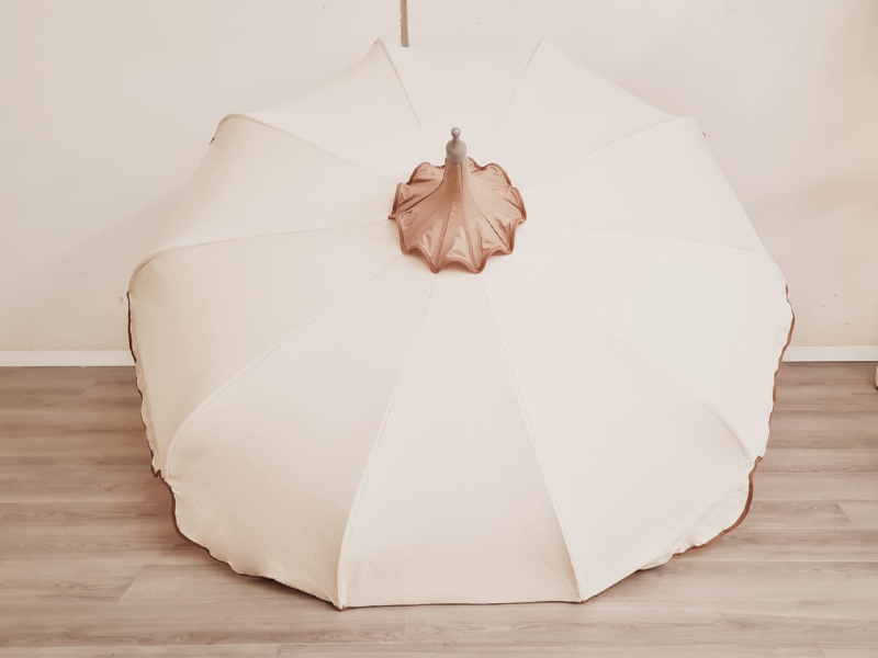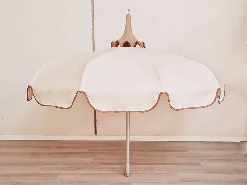 Description: Parasols Pagoda with valance, 110/10 cm, eolo, Ø40 mm pole.Fabric: beige.