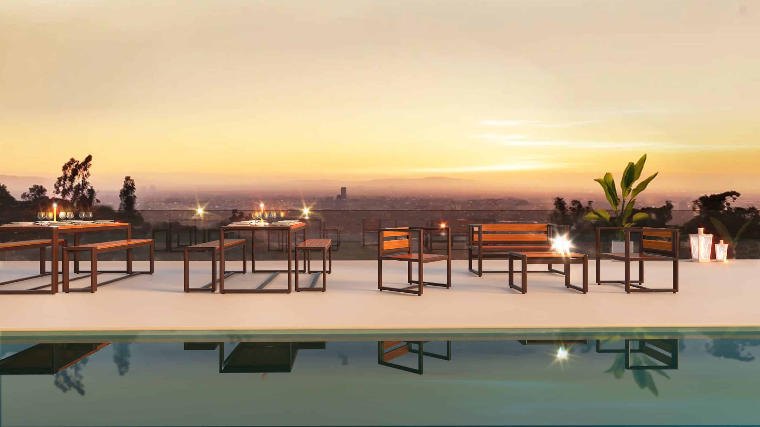 For those looking for solutions that maximize comfort and enhance the style of the venue, Ramberti offers lounges composed of seats and low tables in powder coated or anodized aluminium, with slatted structures and tops.